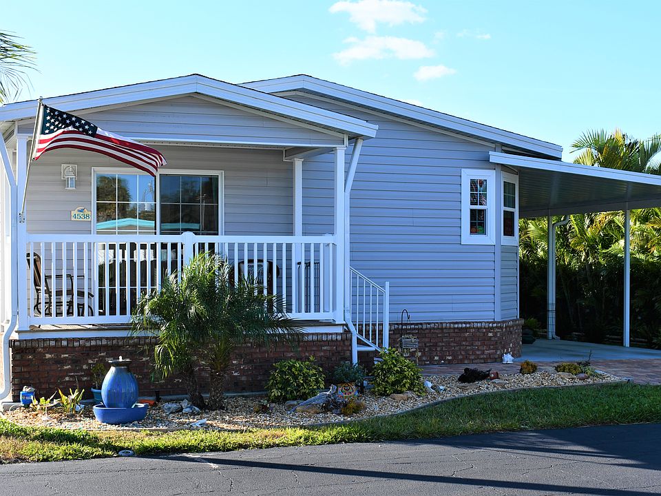 This beautiful lakeside 2018 Skyline home features an open floor plan of a custom built home PLUS an impressive designer kitchen with plenty of cabinet space, a decorative range hood, built-in microwave, pantry, two-tier island, stainless appliances and MORE! Imagine waking up and looking out your bedroom window at your own rainbow provided from the fountain on the lake! The homeowner has created a lovely succulent garden landscape with a decorative water fountain. Enjoy your evening on the deck watching the sunset! All this can belong to you by calling TODAY for your tour! This rare opportunity of a lakeside lot in beautiful Waterside Club will not last long! Waterside Club is a beautiful 55 community just minutes from banks, restaurants, shopping, golf, beaches, medical facilities, doctors, theaters, movies, boating, fishing, YMCA and places of worship. Our beautifully decorated clubhouse is a gathering place for all to enjoy. The activity center is home to a computer lab, fitness center, and billiards. If you are looking for serenity, our large heated pool has a large deck area for relaxation. We are anxious to welcome you to the Waterside Club family. Enjoy Florida's beautiful weather and meet all of your friendly neighbors in this active retirement community. Don't forget, we allow 2 pets up to 40 lbs each!