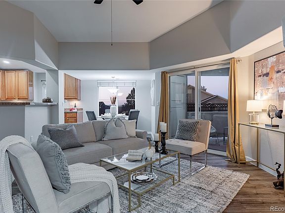 Welcome home to this stunning end-unit condo in the highly coveted Highlands Ranch area. Nestled in the Shadow Canyon community, this 3-bedroom, 2-bathroom condo offers the perfect mix of comfort and convenience. Step inside and be captivated by the open floor plan, where vaulted ceilings and a cozy gas fireplace create a warm and inviting atmosphere. Brand-new laminate flooring enhances the space, while many windows fill the home with natural light. The kitchen boasts stainless steel appliances and is ready to welcome your chef's thumb! Enjoy your morning coffee or a sunset dinner with breathtaking views of the mountains and city right from your dining area. Unwind in your spacious primary suite, featuring vaulted ceilings and an en-suite bath with dual sinks. Two additional bedrooms offer endless possibilities—whether you need extra space for family, guests, or a home office. Step outside to your private, covered balcony, the perfect spot to start or end your day. Take advantage of incredible HOA amenities, including a pool, spa/hot tub, fitness center, and playground. With easy access to C-470, shopping, dining, and golf courses, this location is unbeatable. Schedule your showing today!