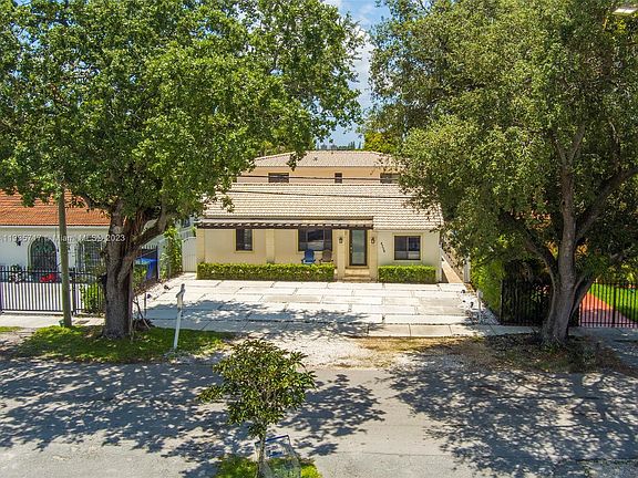 Welcome to this authentic Coral Gables home with a modern twist. The entire home has large porcelain tiles creating a soothing aura throughout. The two primary bedrooms have remodeled bathrooms, and one features vanity built-in mirror lighting and a Japanese sitting tub. The primaries are separated from the oversized kitchen and rest of the house by the modern designed staircase. This massive home consists of a main house and a separate in-law suite with a bedroom, living room, kitchenette, and bathroom. The suite was once a separate dwelling, now opened with a door to allow the family to move freely between the suite and main house. Centrally located in this quiet Coral Gables neighborhood, 1.8 miles from Miracle Mile, 3.8 miles from Coconut Grove, and 4.4 miles from Downtown Miami.