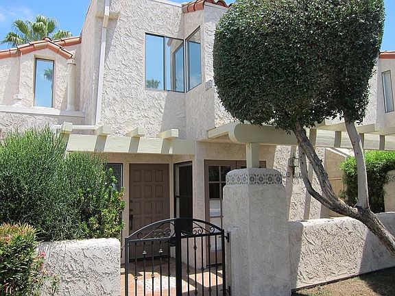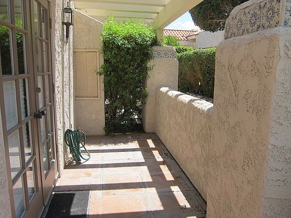 Fully furnished, turnkey ready condominium in Palm Desert's El Paseo Village. This completely remodeled home is a show stopper, and is sure to please. Diagonal tile flooring, and soaring 18 foot beamed ceilings welcome you into the home. The kitchen features new cabinetry, granite counter tops, recessed lighting, and plantation shutters. Well equipped wet bar near the formal dining area. Both bathrooms have been completely redone with upgraded stone and tile surfaces, dual basin vanities, and a frame-less surround in the master suite. All appliances are offered with the rental, including a full size washer and dryer. Private patio area with a view of the tennis court. Just steps to The Gardens on El Paseo, and some of the finest shopping and restaurants Palm Desert has to offer. Community amenities include swimming pools, hot tubs and a tennis court. Offered at $1595 per month on an annual lease. Sorry, no pets. Please call the property manager at 760-895-1430 for more information, or to schedule an appointment.