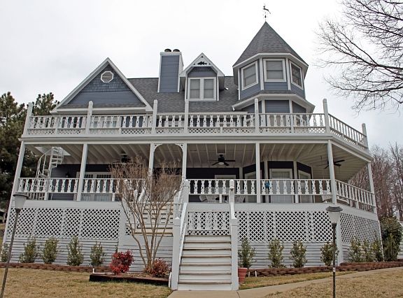 Grand Lake landmark! This statuesque Victorian home with its meticulous landscaped grounds is well known. It is a unique, spacious home tucked just off the main lake in a wide, deep cove with a fabulous 3 slip dock. The main house has 5 bedrooms, 6 1/2 baths, master suite with his/her private baths, 2 spacious living areas, a sunroom and a workshop. What more could you ask for? An oversized garage with half bath plus living quarters with full kitchen and bath above the garage. Wrap around decks on two different levels to relax and savor the ambiance of the lake and home. The gorgeous kitchen and den were 100% remodeled in 2016! In addition to all these fine features, this tastefully furnished home comes with most of the furniture! Truly a magnificent home to remember. (Bedrooms: 6, Full Baths: 6, Half Baths: 2)