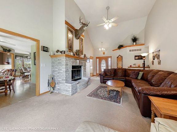 Custom built ranch home sitting on over 1 acre in the Rolling Meadows country subdivision. NEW ROOF, SOFFIT, GUTTERS AND FACIA, and some siding, October 2021. Enjoy the sunsets from the pool, deck, fire pit area or patio while entertaining in the back yard. Incredible area for family and friend get togethers! No neighbors behind! Solid oak trim throughout, Pella windows, 6 panel doors, sunroom off of the eat in kitchen and separate dining area leading to back yard. Living room with wood burning fireplace and vaulted ceiling. Shed and three car heated garage with work bench and additional garage door leading to patio and back yard. Additional storage in the attic with stairs from garage. Additional 3 rooms for storage in basement. Full finished basement boasts a bedroom, family room, bathroom, gas fireplace and custom built oak bar, smart tv with built in stand and Brunswick pool table. 240 electric in home and shed. Generator. Updates: roof (2017), Sump Pump and back up (2019), Pella sliding door (2017) garage door coils (2020), main level freshly painted in 2020. Country living at its best! Nothing to do but move into this spacious home on a gorgeous lot!