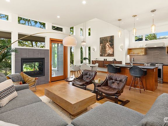 Experience this custom built PNW home on a private, forested lot in West Seattle with territorial views. Enjoy a quiet location close to grocery stores, restaurants, and SeaTac, and just 10 mins from Downtown and Capitol Hill. This updated home has 3+bd/3 bath, high vaulted ceilings, abundant natural light, a sunken great room with an indoor/outdoor fireplace, a luxurious primary suite, a loft with a media room and bar, radiant hardwood floors, and inviting outdoor spaces perfect for entertaining.
