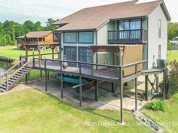 Welcome to 4539 Audubon Trail in Biloxi, where waterfront living meets modern comfort. This 4-bedroom, 3-bath home sits on an acre of land with over 150 feet of deep-water frontage on Tchoutacabouffa River that leads right to the gulf. It features a private boat ramp, floating dock, and spectacular sunset views over the water. The home is also equipped with a utility lift perfect for hauling everything from groceries, coolers and fishing gear straight to the main level! Inside, you'll find more than 2,200 sq. ft. of updated living space with a bright, open floor plan. The kitchen features stainless steel appliances and custom countertops with an artistic flair. From there it flows seamlessly into the dining and living room for effortless entertaining. A stunning, full wall , hand painted tree mural adds character, while newly updated wood-like flooring and all-new blinds bring a fresh, modern touch. All four bedrooms boast water views, balcony access, and three have en-suite baths, offering peaceful retreats for everyone. Outside, enjoy a huge wraparound deck with dual pergolas, the perfect spot for morning coffee or evening sunsets. Beneath the home, approximately 1,200 sq. ft. of covered space is ideal for hosting gatherings, crawfish boils, or a game-day hangout area. It provides ample room for parking, boat storage, outdoor gear and a built-in fenced dog area makes it easy to bring your furry loved ones along for the adventure. Located in a tucked away community, while maintaining close proximity to The Promenade, Biloxi's beaches, dining, casinos, and Keesler AFB. This is your slice of paradise right on the water. Available for sale, lease/purchase or a 6 month rental.