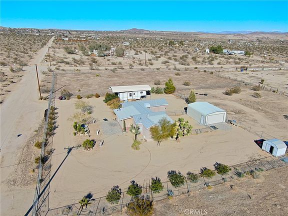 Absolutely perfect cute little desert property. A very minor remodel and this rad little desert home will be styling! Located in an absolutely fantastic area of North Joshua Tree. Pictures do absolutely no justice. The views in either direction are to die for. Two bedroom one bath with a decent sized kitchen and living room. Plenty of room on the 1.13 acre parcel to expand your own desert compound. Less than a 10 minute drive to downtown joshua tree, and approximately a 15 minute drive to the entrance of the Joshua Tree National monument. Comes with a detached sheet metal garage with a detached shed and a detached carport. Simply Awesome!