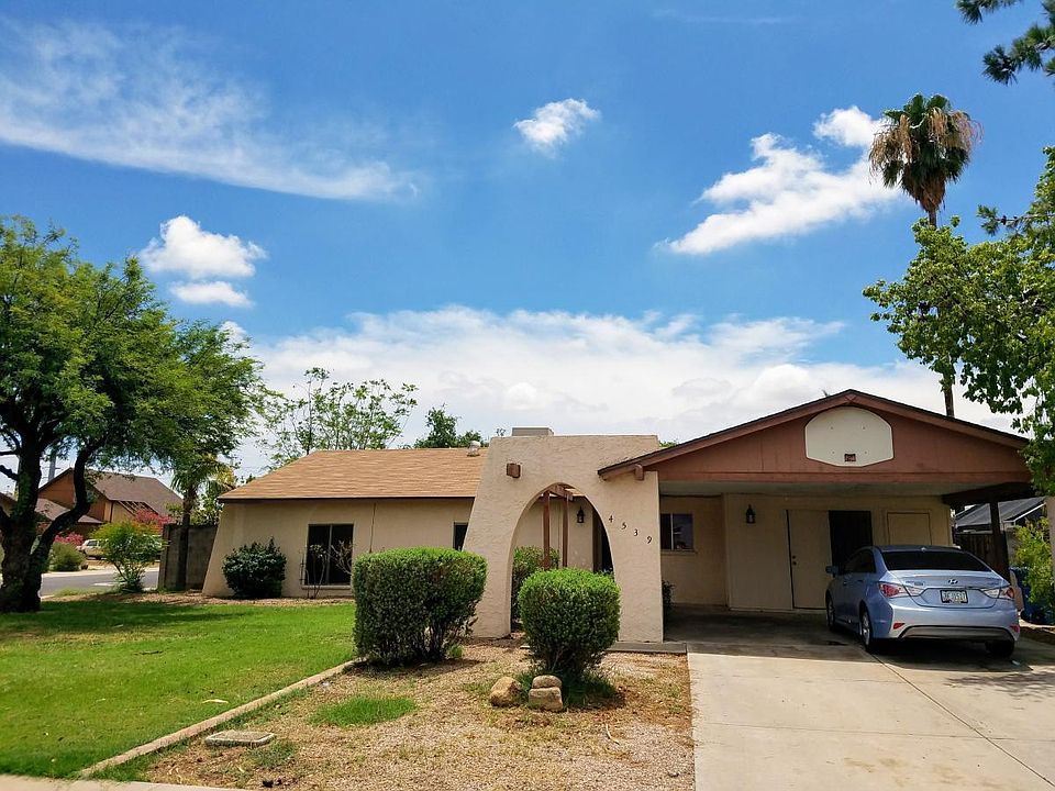 Cross Street: 48th St. & Southern Directions: West on Southern, North onto 45th St., East onto E. Hidalgo, left on 46th, Left to E. Wayland Rd. Public Remarks: NO HOA. CONVENIENT LOCATION. CLOSE TO ASU, FREEWAY, AND AIRPORT. NEW 5 tons A/C with extra returning vent, NEW ROOF, NEW PAINT, NEW LOCKS, NEW BEDROOMS/CLOSET DOORS, NEW FRONT/BACK AUTO IRRIGATION SYSTEMS, NEW SCREENS, WOOD FLOORING in all 4 bedrooms. Huge vaulted Great room with wood flooring & French door. 4 large bedrooms. Remodeled kitchen with Granite countertops & tinted sliding glass door. Tiled kitchen/ entrance/ 2 bathrooms. Refrigerator included. A huge corner lot, beautifully landscaped with Front/Back Auto Sprinkler/Drip Systems. Covered patio with pavers, seating bench & mature Fruit trees/flowers/mulched for vegetable planting. COVERED CAR PORT. Block walls. Paver in the back/side yard. Nice lawn, flowers, bushes, trees, mature fruit trees, and prepared garden area. Shaded TUMBLING IN THE BACKYARD. Date available: 5/10/2025 LIST $375 LOWER THAN ZILLOW ESTIMATE FOR QUICK MOVE-IN. Feel free to call for an appointment viewing or an open house viewing. OPEN HOUSE: 5/10/2025, 10 A.M. -11:30 A.M. Amazing 4-bedroom, 2-bathroom house in Phoenix. No Utilities included. Date Available: May 10th, 2025. $2,300/month rent. $3,450 security deposit required. Thank you for showing interest. The lease was signed on 5-18-2025 with immediate move-in. NO SMOKING