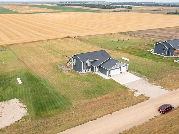 Don't miss this beautiful newer construction home just minutes south of Mandan nestled on a large 1.52 acre lot with lawn, sprinklers, and trees already established! The split level entry features a spacious breezeway and two separate entrances from the garage and front door. As you make your way upstairs you will first notice the tall vaulted ceilings that covers the dining room, living room, and kitchen! The kitchen features a large quartz countertop island, birch cabinets offering an abundance of storage, and stainless steel appliances! Down the hall this main level features 2 large bedrooms with good sized closets, and a full bathroom. The primary suite features a boxed ceiling and a large walk in closet! The primary bathroom offers an oversized dual sink vanity, plenty of storage, and a walk in shower! Off of the dining room you can step out onto your brand new, huge maintenance free deck! This awesome deck overlooks the large lot and has a stairway leading down to a wonderful patio area perfect for entertaining. The unfinished 1474 sqft basement is already framed for 2 more bedrooms and another full bathroom. The basement also has walkout access to the outdoor patio! Finishing it wouldn't be hard at all and allow you to put your taste on the finishes! The garage boasts over 1020 square feet and offers a deep 3rd stall. The garage has been finished, offers hot/colt water, floor drain, and comes plumbed ready for a garage heater! This home features tons of qualities and can give you that rural living experience just minutes from Mandan! Agent is related to seller.