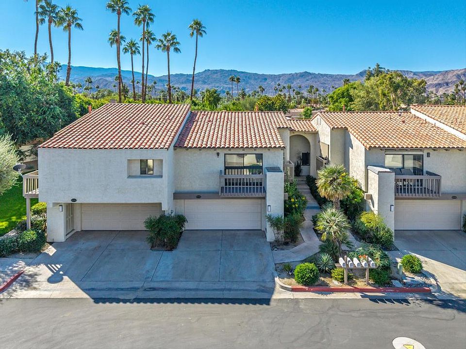 This South Palm Desert condo is perfectly situated within a serene cul-de-sac, offering breathtaking west-facing views of the mountains and a tranquil outlook onto one of the community's three pools.This is a great opportunity to infuse your personal style and design preferences into every corner, transforming it into a home that perfectly reflects your taste and lifestyle. Spanning a generous 1,451 square feet, this thoughtfully designed 2-bedroom, 2-bathroom condominium provides an ideal blend of comfort and style. It also features a spacious two-car garage, offering ample storage and convenient parking.Step out onto your private patio to enjoy the lush green surroundings and the inviting waters of the nearby pool. Inside, a central atrium that bathes the living area in an abundance of natural light. This striking feature perfectly complements the impressive soaring ceilings, creating an airy and expansive atmosphere throughout the home.The HOA manages the controlled access gate, ensuring enhanced security, and handles all exterior maintenance, including the roof, building facade, and beautifully manicured grounds. It also takes care of all the pools, spas, tennis court and clubhouse. Beyond the community's exceptional amenities, you'll find yourself mere moments away from the world-renowned El Paseo, renowned for its unparalleled selection of high-end shopping, exquisite dining experiences, and vibrant entertainment options. Golf enthusiasts will appreciate the close proximity to numerous championship courses, while easy access to top-tier healthcare facilities further enhances the convenience and desirability of this prime location.Don't miss the opportunity to enjoy desert living at its best in a prime location.