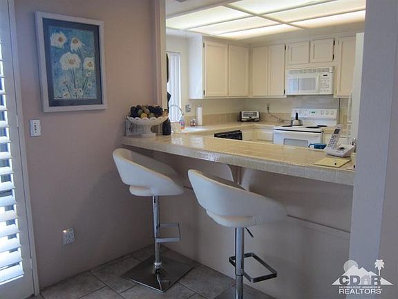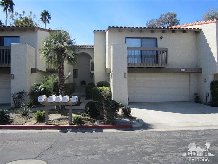 This spacious split level unit in south Palm Desert is located in an area that is one of the best kept secrets. The living area has high ceilings, plantation shutters and a large kitchen with views to the pool and spa area. The 2 bedroms are located on the upper level and the master has it's own private balcony. The attached 2 car garage has entry into the unit. The complex has 56 units, 3 pools and a clubhouse. This unit is being sold turnkey furnished.
