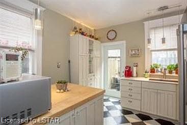 SOLD FIRM.Downtown Duplex situated on the border of trendy Old East Village and Woodfield, 2 doors north of the Historic Banting House. A blend of original character and modern updates abound throughout this solid yellow brick 2 story home. Potential to triplex (would require minor variance for lot size). Main Floor 2 bdrm boasts modern renovated Kitchen with direct access to fully fenced and decked private backyard. Spacious 2nd floor 1 bdrm has mostly original Oak and Pine throughout with bright new kitchen. High ceilings on all levels including the basement which has great potential for future development of basement with separate side entrance and 3rd hydro metre. Central Air (2019) & Furnace (2010), Shingles and Eaves (2014). Close to Public transit & Bus Lines. Although no on-site parking there is a City Parking Lot 1/2 block south with $50 monthly parking pass. Smaller lot is great for investors with minimal lawn maintenance! NOTE: photos were taken prior to tenants moving in. Main floor lease $1,425 + hydro 09/30/21 and upper $1,275 + hydro. Great cash flow as is, and with future basement development there is potential for even greater cash flow.