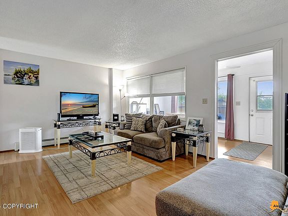 NICE open floor plan. Laminate floors throughout downstairs. Kitchen has gas cooktop & pantry. South facing Sunny home has small fenced backyard w/ garden shed. Sun rooms off living room & master bedroom could be used as office etc.. Decks up and down. Sauna. Fabulous mountain views! No dues-no association. Qualifies for FHA/AHFC First time homebuyer. Buyer & Buyer's Realtor to verify financing!