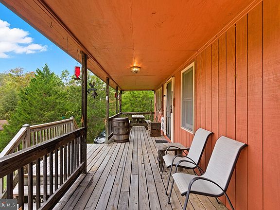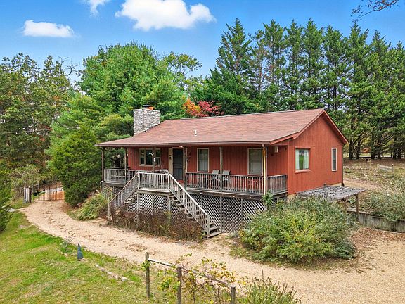 Well-maintained 2BR/2BA rancher on 5+ wooded acres blends craftsmanship, comfort, and natural beauty. Light-filled living room with vaulted ceilings, custom wood beams, hardwood flooring, wood-accented walls, and wood-burning fireplace with handcrafted mantel. Dining room features coffered ceiling and matching beams. Custom kitchen boasts cabinetry and flooring made from reclaimed historic wood. Primary bath offers a large soaking Jacuzzi tub with custom wood paneling. Partially finished 1,100+ sq. ft. basement includes spacious den, rec room, walk-in cedar closet, and 5-year-old HVAC—ideal for home office with Frontier fiber optic internet available. Detached 2,300 sq. ft. woodworking shop includes dedicated metered power supply and sawdust collection system, plus additional smokehouse and woodshed. Enjoy walking trails, labeled garden beds, and a tranquil water fountain within the split rail fence. New roof shingles within past 5 years. Recently appraised and listed below appraised value - an exceptional opportunity to own a private homestead, craftsman’s retreat, or woodland sanctuary.