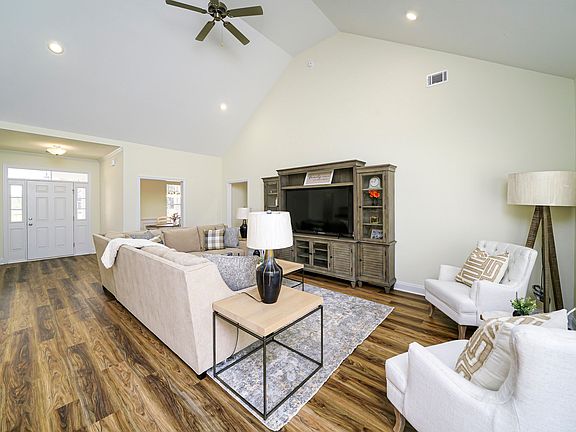 #CarbonConstruction Heather Plan! Welcome home to the Heather Plan! After a long day, unwind on the inviting rocking chair front porch, where you can take in the charm of the beautifully landscaped yard. Step inside the spacious foyer, where luxury wood-look vinyl plank flooring, crown molding, and soaring high ceilings greet you with elegance. The kitchen is a chef's dream, featuring granite countertops, a full stainless steel appliance package, and a large island that seamlessly connects to the breakfast area and great room. Host memorable family gatherings in the formal dining room, adorned with exquisite coffered ceilings and classic wainscoting. The primary suite offers a touch of luxury with its tray ceilings and recessed lighting, creating a relaxing retreat. The en-suite bath is designed for comfort and style, boasting dual vanity sinks with framed mirrors, a large garden tub surrounded by tasteful tile, a custom walk-in tiled shower with a built-in niche, and an expansive walk-in closet. Don't miss the rear covered patio, perfect for relaxing evenings or hosting a summer barbecue. These are not actual pictures of the home.