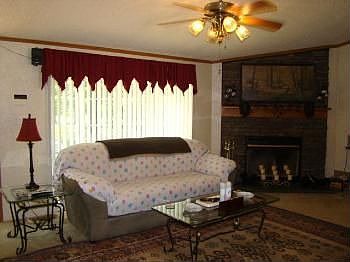 Spacious home on private wooded lot. Above ground pool w/solar cover & 2 automatic cleaners, hot tub on screened porch, 4 storage buildings, fireplace in living room, nice kitchen w/pantry & eat-at bar, (microwave is not working). Walk-in closets in bedrooms, master bath has garden tub, separate shower & double sinks, skylight in hall bath, blinds remain. New water heater. Selling as is. Buyer must have bank approval/short sale. Watch step on back deck. Fencing in front & back yard, brick underpinning, new well 2000.