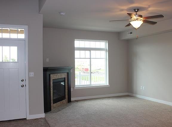 New East Iowa City town home located adjacent to Windsor Ridge overlooks beautiful Cardigan Park! Front porch leads to 2 story entry and open floor plan featuring large great room with gas fireplace. Kitchen has tile floors, granite counter tops, S/S appliances and breakfast bar. Main level 3/4 bath. Three bedrooms include a beautiful Master Suite with walk out to covered deck, bath w/double vanity, lg walk-in closet, and linen closet! Laundry closet on upper level. Two car garage. Simply beautiful!!