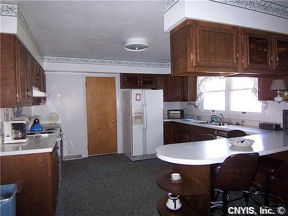 This Oneida Ranch is spacious and charming! 1,688 +/- square feet. Enter a large foyer, living room with gas stone fireplace, kitchen with wood cupboards open to dining room, 3 nice size bedrooms, 1 1/2 baths, 3 season sun room, 1st floor laundry, 2 stall garage, full basement, central air, hardwood floors! Bonus: working 3/4 bath in basement. Taxes are shown without exemptions.