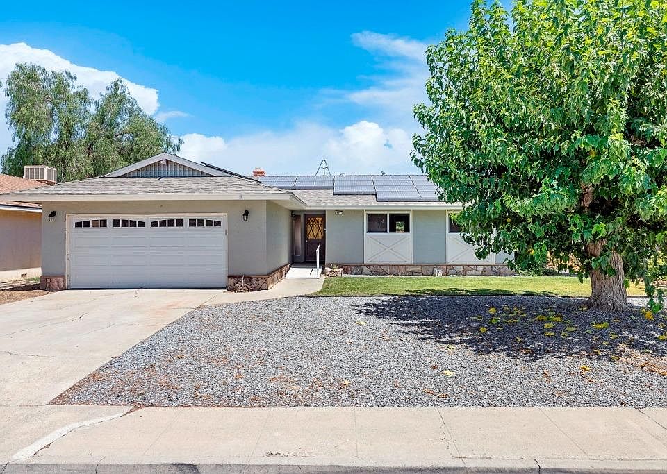 Immaculate 3 bedroom, 2 bathroom home with so much to offer! Open living room with fireplace, spacious kitchen with dining area off to the side, ceiling fans throughout and more. Enjoy all the newer updates that include windows & frames including patio door, ceiling fans, newer AC unit, outside and garage lighting and newer fencing. Large backyard with endless possibilities plus you will find nice 10 x 12 storage shed with electrical access and workbench. Front yard rock landscaping and mature landscaping throughout. Enjoy all the timeless charm this home has to offer! This home has solar too!! Located in a quiet neighborhood close to schools. Call today to schedule a private tour!