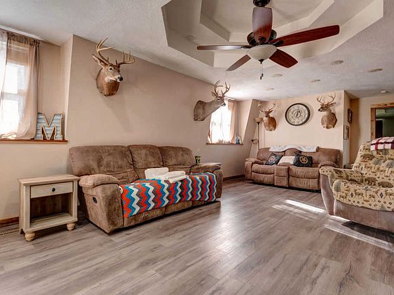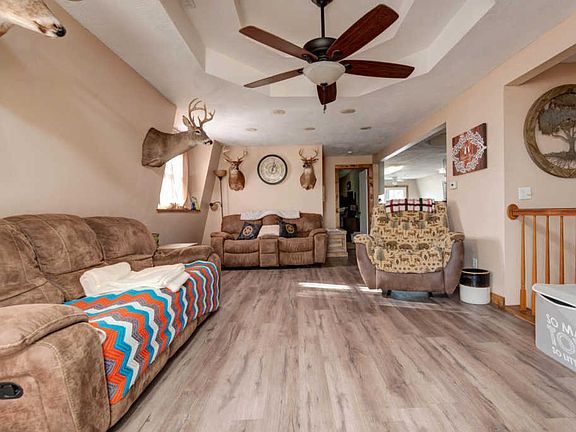 Private, peaceful and secluded this 3 bedroom, 2 bathroom home with 2 living areas has it all on 5 park like acres. With a wide open floor plan this home has been updated with new floors and paint throughout the home. The main level has a beautiful family room when you first walk in along with the master bedroom on the main floor, kitchen and bathroom. Updates throughout the kitchen include white cabinets, nice dining area and all stainless steel appliances. There is one large master bedroom on the main level with tray ceilings and walk in closet. The main floor bath has an updated sink, newer flooring and a tub/shower combo. Downstairs there is another huge living area with a wood burning fireplace and two more large bedrooms. There is a fourth non-conforming bedroom or office space as well. Don't miss the full bath with a walk in shower and large vanity along with the laundry room! The oversized two car attached garage is a great size and has another sun room or 4 seasons room that would be perfect for more living space. All this and 5 perfect acres with pasture, partially fenced and a small outbuilding. Located just 4 miles from town this one is a must see!