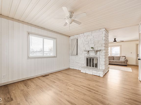Looking for a home that will be uniquely yours? Be sure to check out this trendy 3 bedroom, 1 bath home with basement situated on a quiet street in Knightstown! Upon entering this home, you'll be greeted by the large living room that shares a two-sided masonry fireplace with the spacious dining room. The kitchen includes all of the stainless-steel appliances and opens to the large back deck allowing you to easily enjoy your evening dinners outside this summer! The primary bedroom, with dual closets and private entrance to the bathroom, also opens to the same deck for relaxing evenings under the stars. The basement includes a large bonus room that would be ideal for entertainment and recreation as it also includes a bar area. An additional room in the basement, which includes an exterior entrance, could be an amazing room for exercise equipment, office space, crafting supplies or simply just used for storage depending on your own personal needs. The laundry area, also located in the basement, will come complete with the washer and dryer and even includes a laundry chute from the main level! Outside, the attached carport isn't just great space for your car, but also makes a great area for covered patio relaxing. With a .38 acre lot, the fenced yard is ideal for the kids or pets to run and play. The roof and central air conditioning unit were both replaced in 2023. Schedule your showing today and prepare to fall in love!