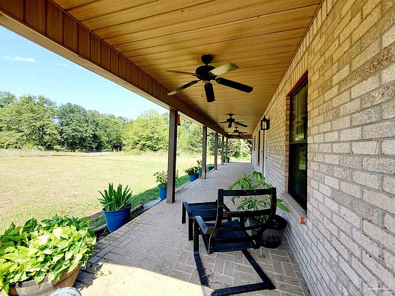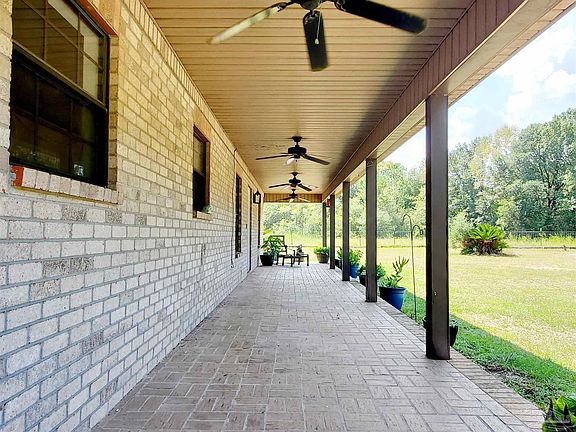 Welcome to your secluded sanctuary! This beautifully updated 4-bedroom, 2-bathroom home offers the perfect blend of modern comfort and rustic charm, nestled on a spacious, fully fenced 1 acre lot surrounded by majestic trees. Tucked just far enough off the beaten path, yet conveniently close to essential amenities like gas stations and grocery stores, this is the ideal haven. As you arrive, you'll be greeted by a generous front porch that spans the entire front of the home, providing the ideal spot to soak in breathtaking sunsets. Embrace the serenity of country living while enjoying modern amenities, as this home has been thoughtfully updated throughout. A gated driveway leads to the yard and a covered patio that can double as a parking space or outdoor dining area with access to the kitchen and the master laundry with integrated walk-in closet and bathroom. Step into the kitchen, where a barn door to the pantry maximizes your dining area. A culinary enthusiast will appreciate new stainless steel appliances, including a top-of-the-line convection air fryer stove, complementing a deep well sink. Quartz countertops grace the kitchen and master bath while granite countertops elevate the elegance of the hall bathroom. Luxury vinyl flooring spans the entirety of the home. The bedrooms are generously sized, providing ample space for your larger furniture. You'll also find a wealth of stand-up attic space, offering additional storage options. With updated plumbing, a new HVAC system, and a durable metal roof, this home combines classic charm with modern efficiency and durability. If you're seeking a peaceful retreat away from the hustle and bustle, this rare property offers the respite you've been looking for. Don't miss the opportunity to make this secluded haven your very own.