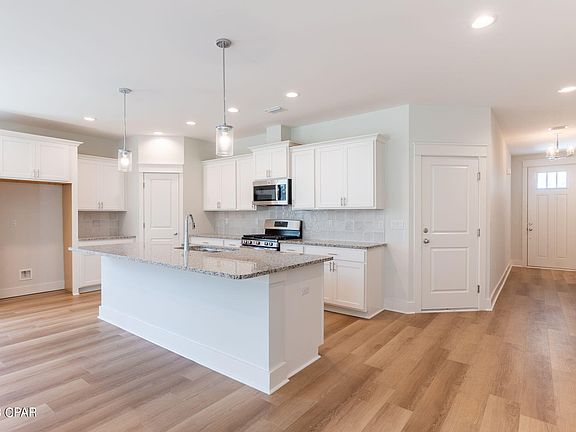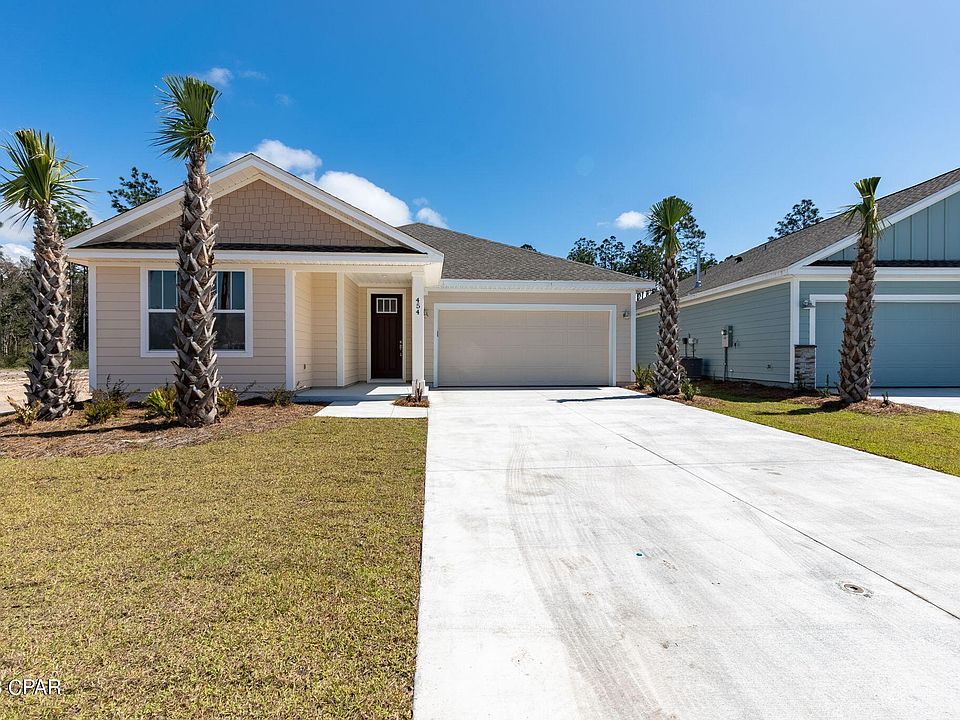 NEW CONSTRUCTION - Panama City Beach's desired Breakfast Point subdivision built by Southern Coastal Homes-Offering easy access to the white sandy beaches of the Gulf of Mexico, Publix shopping center, Breakfast Point Academy-rated A, & the famous Pier Park. INTERIOR features of this coastal inspired home offer a private Foyer entrance, large volume great room with an open floor plan, kitchen with center island, custom cabinetry with soft close drawers & stainless steel appliances, master suite with tray ceiling, tile shower, double vanity & large walk-in closet. Guest bedrooms with access to full bath, dining room, & laundry room. EXTERIOR of this home features a 2-car garage, covered porches in the front & back, fully sodded yard with sprinkler system.