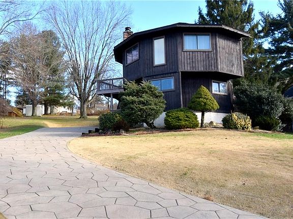 Check out this totally unique home with European charm and wonderful views. This home features cathedral ceilings, skylights,and a spiral staircase. There's sliders that lead to the deck, a stamped concrete driveway and so much more! The lower level family room is very inviting for entertaining. Newer kitchen, furnace, A/C and Deck (2013) bath and windows (09)