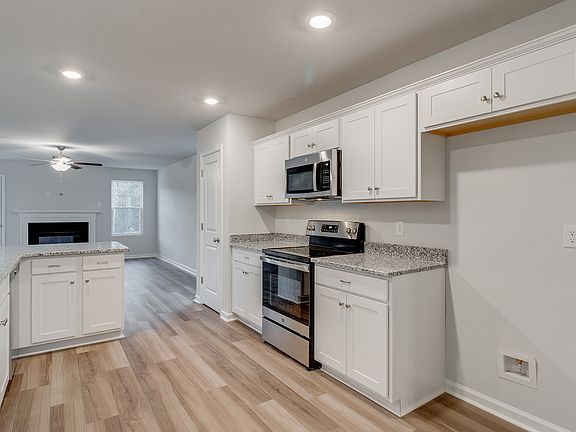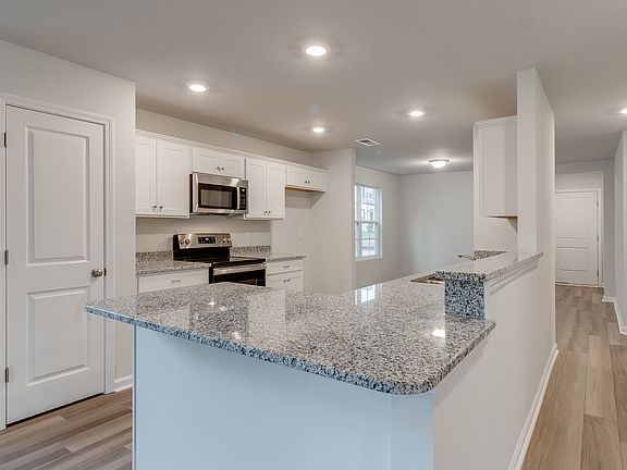 The Habersham is a Primary-on-main home with three bedrooms, and two-and-one-half bathrooms. Come inside and see the openness and flow of the downstairs living spaces. A dining area sits next to the kitchen, and you'll notice it as soon as you walk into the home! The kitchen opens up to family and eat-in area. Smooth granite lined kitchen counter tops are accentuated by white cabinetry for a coastal and bright design. Hardwood-style luxury vinyl plank flooring lines all the downstairs common areas. As you walk into the primary bedroom you'll notice the walk-in shower, separate tub, dual vanities and a roomy walk-in-closet. We've added cabinets above your washer and dryer for a beautiful finishing touch. Be sure to check out the back patio, where you'll get to enjoy the Blythewood breeze. Call for more information!