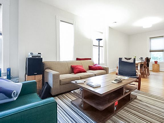 Available 6/1. Extra large 3-bedroom, 2-bath condo in bustling Central Square. Unit features gut renovated kitchen and baths, stainless appliances with granite countertops, high ceilings, hardwood floors and central A/C. Also includes in-unit washer/dryer, heating, as well as a shared fenced yard.