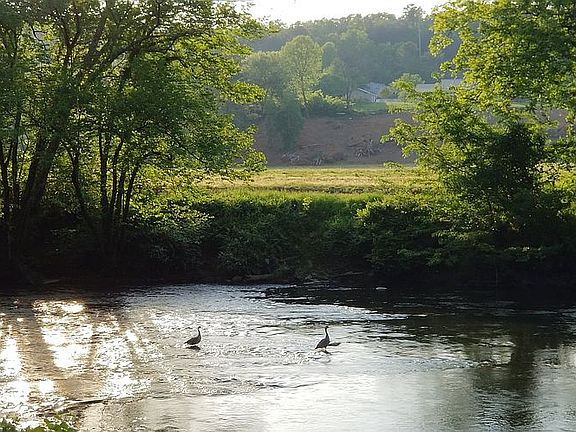 This riverfront property is a rare find. Access to this property is a single-lane paved tree-lined road that runs adjacent to the Hiwassee River. The Hiwassee River is part of the TVA system so the levels are controlled. A babbling brook with beautiful landscaping and your own bridge border the property. The deck over the river is the largest on the street and the gazebo is the perfect shady spot to enjoy the sights and sounds of the river. You will probably see the resident bald eagle. The property on the other side of the river is the flood plain and will always remain free of buildings. This property is just minutes away from Erlanger Hospital, Tri-County College, and the John C Campbell Folk School. It is being sold fully furnished as a successful 5-star Airbnb. As a business, this will pay your mortgage and then some. This unique property is actually two units. The possibilities of the ADU are endless.  This single-level living house is extremely accessible. The main house has a view from every room of the fast-moving river. The original building was torn down to the studs in 2012 and completely rebuilt. It sports a metal roof and hardy plank siding. It has beautiful hardwood floors, and a large tile shower with a seat. The laundry includes Samsung washer and dryer. Being fully equipped you could pack your personal belongings and move in and not feel as if you were lacking anything should you choose to get away from the crowds, the heat or cold or the hurricanes. You could live in the main house and rent the cottage which is self-contained with a nice kitchenette, bedroom, bath with walk-in shower and sitting room with a Samsung TV and a view of the river. It would also be perfect for extended family or a caretaker.