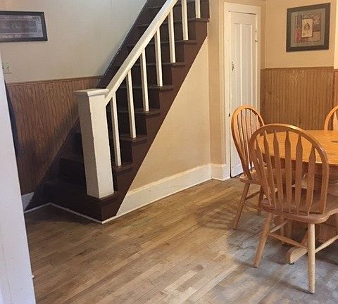 Looking for the perfect starter home or investment property? Look no further. This little gem is so welcoming, you will want to cat it home from the moment you drive up. You enter the home through a nice-sized breezeway into the family room. There is a great open concept into the dining area, both of which contain the original hardwood flooring. From the dining area you can access the staircase to the upstairs or walk-through to the bright, spacious kitchen! In here, you will find plenty of cabinet room for a large table and lovely laminate counter-tops. Another convenience is the stacked washer and dryer, right off the back entrance, which also leads to the fenced-in back yard, perfect for pets. Upstairs, there is a spacious sitting room at the landing, perfect for an office or a recreational area. There are two good-sized bedrooms on either end of this multi-purpose room. The updated bathroom has a large walk-in shower and beautiful wood wall inlay throughout. Newer windows help with efficiency. There is parking available on both sides of the home. This quiet, improving neighborhood is a great place to invest.