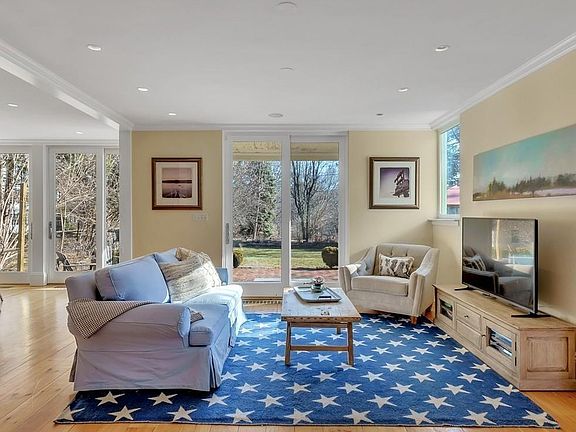 Located on one of Concord's most coveted streets, the historic "Frederick Tarbell House" c.1878, has been beautifully reovated with many rich appointments, all the while maintaining the original character of this grand home. Sundrenched and airy, featuring high ceilings and oversized windows, the bright open floor plan offers generous well appointed living spaces. Calling attention to a wall of sliders off the dining and family rooms open onto a covered deck and tranquil back yard perfect for outdoor entertaining, a cozy fireplaced living room, a library with built-in bookcases and pocket french doors, and gleaming original wide plank floors. The heart of this home is accentuated by a custom kitchen with soaring beamed ceilings, double thick Carrera marble counters with a breakfast bar for casual dining and unparalled sweeping views of the National Park and Old North Bridge. Retire upstairs to the elegant master suite with modern bathroom, or unwind doing yoga in the studio.