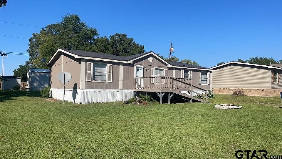 Double Wide manufactured home with split bedroom floor plan on a private lot just minutes from Lake Palestine. Jacuzzi tub in the master bath. Front porch deck is wheelchair accessible and there is a side entry door as well. Stone Fire pit in front for those cool fall evenings. Kitchen, which includes a dry bar. comes with all appliances. Walk in closets in all bedrooms. Brand new roof as of Sept 16, 2022
