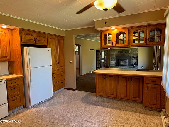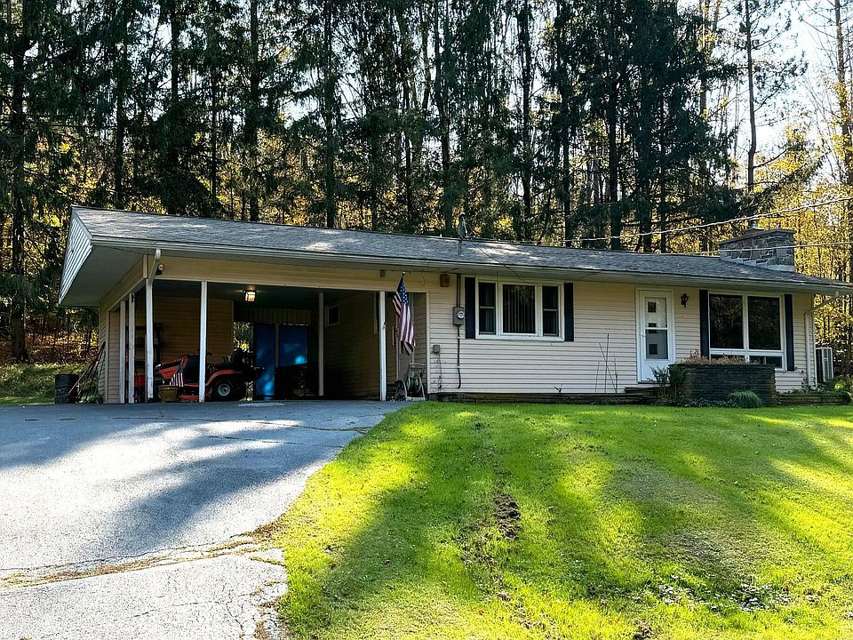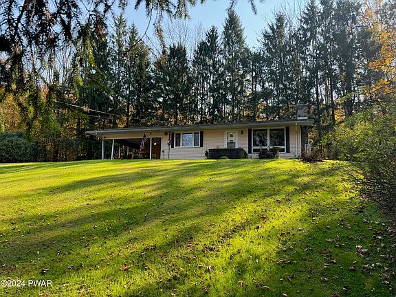 WAYMART AREA - SMALL RANCH - 6 ACRES - Located minutes from Honesdale as well. Adorable h0me nestled on a nicely wooded property with a small yard! Living Room with Woodstove/Fireplace, Eat in kitchen with Snack bar and a mix of hardwood and carpeting flooring. Whole house generator, full basement, full unfinished basement and a carport with additional storage are just a few of its fine features. Also includes a GENERAC back up power generator!!