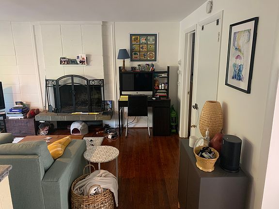 Garden-setting, green views, quiet 4-unit building. Upscale shopping AND commuter train within walking distance; expanded shopping 5 min by car. Very quiet location. Second floor apartment, each unit has its own entrance (not lobby). 2 bedroom unit, one could be an office or den. Wood-burning fieplace, vaulted ceiling. Newly renovated. Large eat-in kitchen and oversized pantry. Unit includes off-street parking for one vehicle. No cross-streets, little traffic. Shared washer/dryer in basement. Rent Includes HEAT, water, hot water, parking and grounds upkeep. Heat, water, hot water, landscaping and trash removal included in monthly rent.