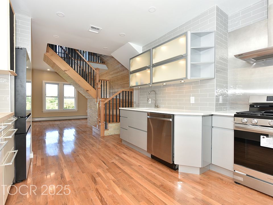 Welcome to your dream rental in the heart of Rutherford! This completely renovated 2nd- and 3rd-floor apartment offers modern living with every upgrade imaginable. Featuring 2 spacious bedrooms and 2 full baths, this home impresses with brand new hardwood floors, a stunning kitchen with all new appliances, and beautifully tiled bathrooms. The 3rd floor boasts a large finished lofted space complete with the second full bathroom - perfect for a primary suite, home office, or guest area. Natural light fills the home through skylights, highlighting the accent walls and open layout. Step outside to a large private deck off the kitchen, ideal for entertaining or relaxing. Additional features include new central air, updated lighting, electric, and plumbing, plus in-unit laundry for your convenience. Enjoy off-street parking for up to 3 cars and an electric car charging station. This lead-free certified unit is ideally located close to transportation, shops, and Tamblyn Field - offering a perfect blend of style, comfort, and convenience. A must-see property - schedule your private tour today!
