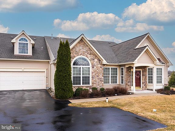 Welcome to the 454 Pebble Beach Drive located in The Villas at Linfield! This well-maintained end-unit carriage home is set in a wonderful location which overlooks community open space from the patio of this charming home. The Villas is an active adult community which features access to the renown Linfield National Golf Club. The open floor plan features convenient first-floor living with three bedrooms and two full baths. You will be welcomed by a hardwood foyer, vaulted ceiling in the spacious living room which leads into a generous sized dining room, spacious kitchen features with 42" cabinets, a pantry, granite countertops, a tile backsplash, and generous recessed lighting. There is a two-tier granite breakfast bar seats four (4). The great room is very spacious and has a cathedral ceiling with access to a side patio with ceiling fan and custom sunshade which overlooks community open space which represents one of the best lots at The Villas. Adjacent to the kitchen is a laundry area with access to a two-car garage, complete with built-in shelving and extra storage. The spacious primary suite with cathedral ceiling includes a ceiling fan, two spacious closets, and a luxurious bathroom with a stall shower, soaking tub and double vanity. A second bedroom and full tiled bath complete the main level. Upstairs is a versatile loft area which may serve as a 3rd bedroom, office, artist’s studio, library or additional entertaining area. Additional storage is available in the HVAC system and water heater closet. The community offers many amenities including an in-ground pool, clubhouse with an exercise room, game room, pool table, library and a grand ballroom with a full kitchen. Convenient located to shopping, transportation, just minutes away from Limerick Premium Outlets, Route # 422 and King of Prussia Mall.