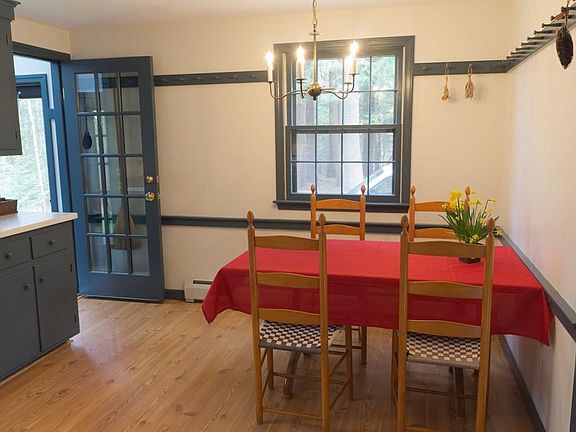 Move right in to this well kept Saltbox Colonial located in a private setting close to conservation trails and river for canoeing/kayaking. Enjoy summer days on the large deck overlooking the trees in the back and side yards. Shaker charm is apparent throughout the house including 12/12 windows, beamed ceilings, wide pine flooring, and solid six panel doors The large master bedroom has a cathedral ceiling with beams, a walk in closet, and several window. . The second floor bath includes a whirlpool tub, cathedral ceiling and a free standing fireplace.