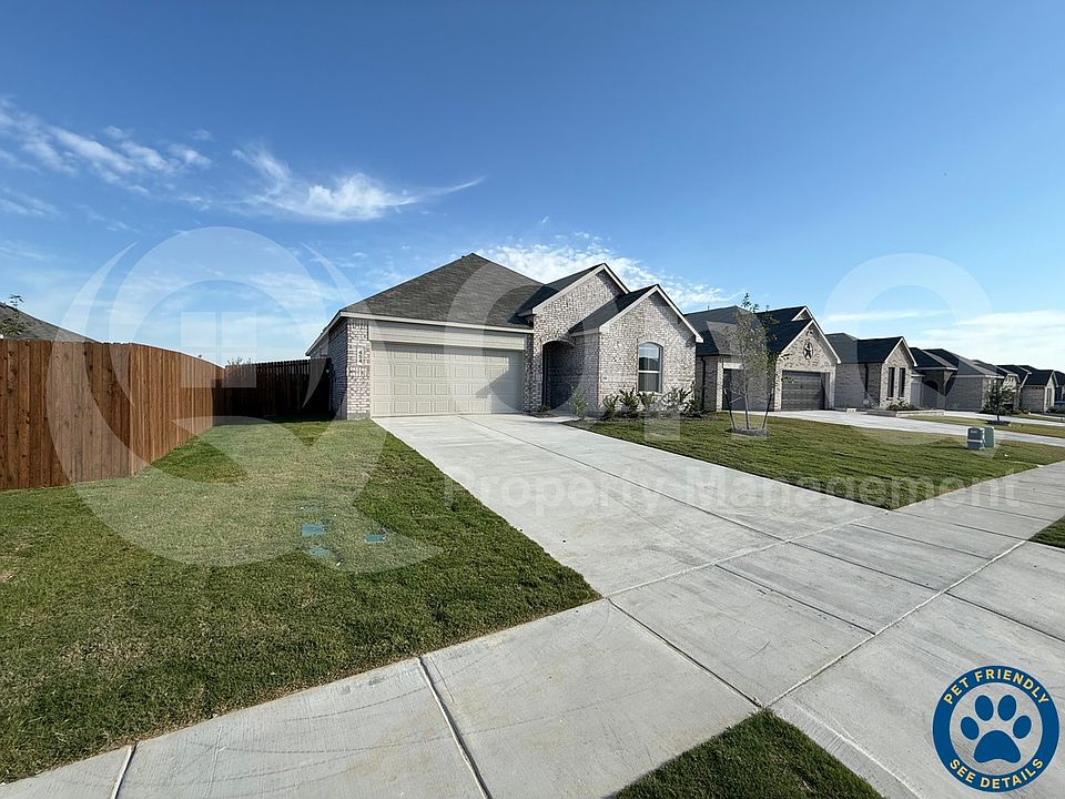 2,062 SQ FT! 4-bedroom, 2-bath home in the heart of Justin. A great opportunity to be a first time renter of a brand new house and brand new appliances. Desirable single-story floor plan with spacious living areas, perfect for entertaining! Charming kitchen features ample cabinetry and included all new appliances: Dishwasher, Dryer, Microwave, Oven, Refrigerator, and Washer. Tile and carpet flooring in all the right places! The primary suite offers a walk-in closet and a private ensuite bath. This home includes 4 nicely sized bedrooms plus a flexible bonus space ideal for a home office or den. Enjoy outdoor living with a fenced backyard, grassy area, and covered patio. 2-car garage! Includes 24X7 Power Backup and reduced electricity charges through BASE power. Great Justin location near schools, parks, dining, and entertainment. Community amenities include a refreshing pool and scenic biking/walking trails and close to highways 114, I35W & 377.