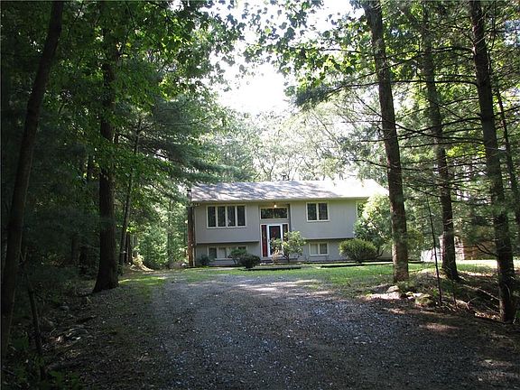 This well built, three bedroom home sits surrounded by a 2 1/2 acre beautiful, wooded lot. The cherry cabinetry, stainless steel appliances and black granite counter tops in the kitchen bring a rich feel to this home. Ample deck space and a fire pit make the backyard very inviting. The lower level comes complete with a multi purpose family room, with a beautiful, copper topped bar and wood/coal burning stove. This home is conveniently located near the highway for an easy commute.