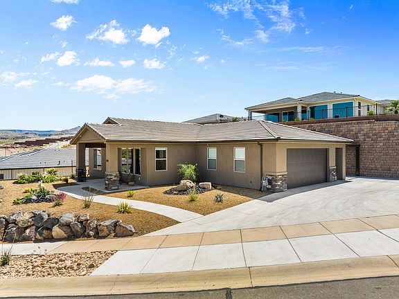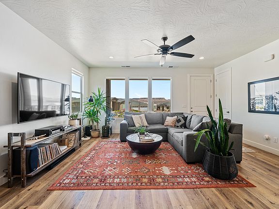 Stunning Zion Vista home sitting on an elevated, premium lot! Fantastic curb appeal with a charming front patio to overlook incredible views of Zion, Hurricane Valley, and surrounding ridges. This spacious floor plan boasts huge windows to capture the views and natural light that compliment the high-end finishes throughout, including quartz countertops, tile showers, large closets and luxury vinyl plank flooring. The private lot with a low maintenance, secluded yard feels like you have no neighbors, and a newly installed awning over the rear patio provides additional shade and comfort. Perfect for enjoying the gorgeous Southern Utah weather! The large driveway offers plenty of extra parking space in addition to the oversized, 2-car garage providing ample space for your toys and tons of storage. Buyer to verify all information, deemed reliable, however buyer to verify all info including utilities & HOA information if applicable. The listing Broker's offer of compensation is made only to participants of the MLS where the listing is filed.