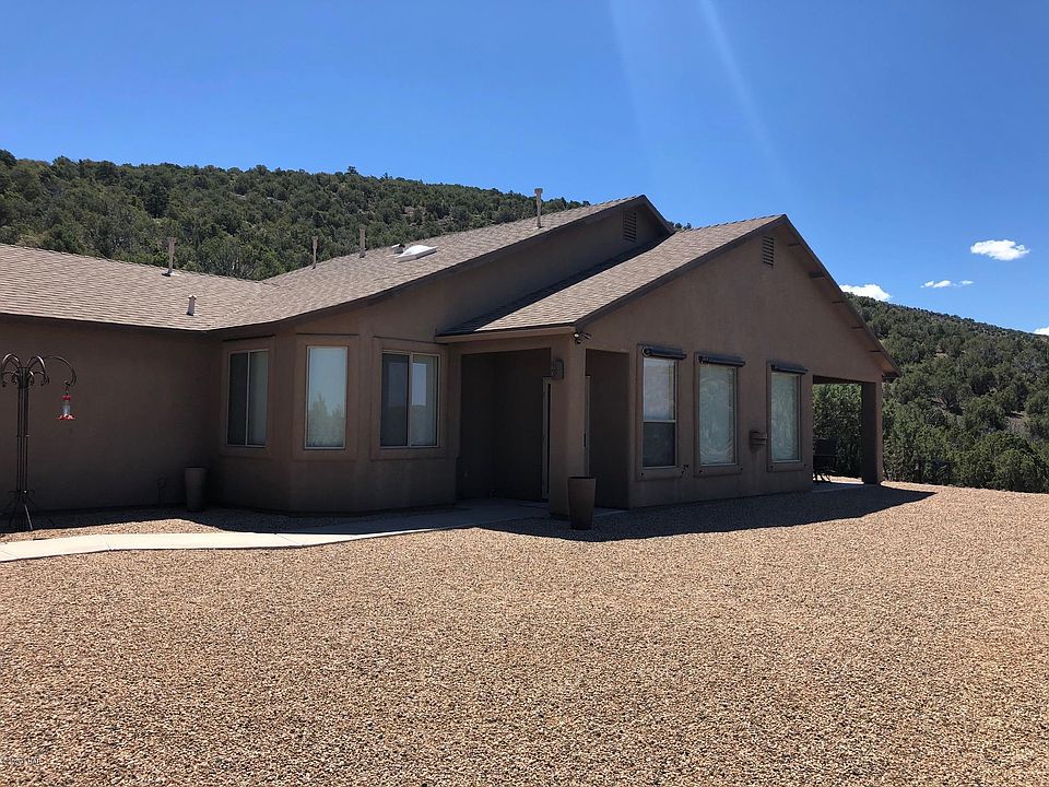 Luxury off-grid living in the beautiful high desert mountains east of Kingman AZ. 5100ft in elevation gives this extremely comfy home a near-perfect year-round temperatures. With 2 bedrooms, 1 and 3/4 bathrooms, 1 office, two bonus cabins, and a 2 car garage with a small orchard and a landscaped yard and 36+ untouched acres of surrounding vacant land this property is very special. Hard surface floors throughout the living areas, attached garage, electronic sunscreens on the windows and beautiful security doors make this home feel as safe as it is beautiful. The beautiful fixtures, the custom cabinets, the full thickness granite counters, the stone shower surround, the garden tub, the double vanity in the master, and the window for natural light in the master closet makes this home very unique in the rural area where minimal is much more common than the luxurious finishes of this home. The area around the house has been landscaped for a very special finished look among the untouched nature of the Juniper trees and Pinion pines and a variety of high desert plants. There is an existing small orchard and an area cleared for a garden or greenhouse. Many walking paths and stairs cut...