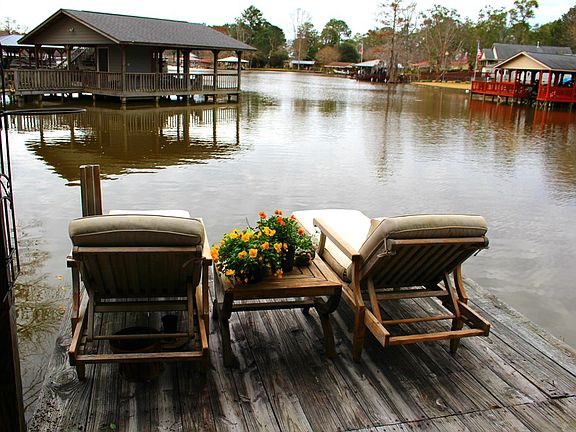 Tucked back into an approximately 1.91 ac wooded lot is this pristine lakefront overlooking a scenic cove filled with beautiful homes. This ready move in beauty was built in 1997,& has been well maintained, & even recently upgraded. The location of the home makes for quick access to major traffic arteries & area conveniences. The ranch style of the home makes for easy living & access for all ages, and being located out of the flood plain makes for a tremendous savings throughout the years. One step inside this impressive home, the buyer will appreciate the gorgeous solid oak wood flooring,and pavers, living room ceiling with beams, built ins galore throughout the home,granite countertops & custom cabinetry throughout. The lot is beautifully landscaped, & has a db single bthse & dock.