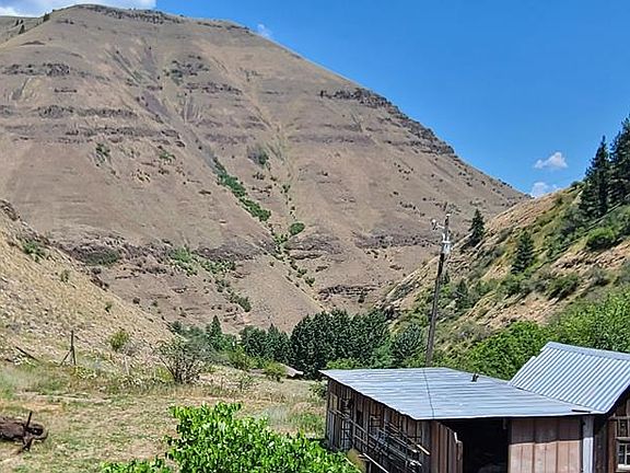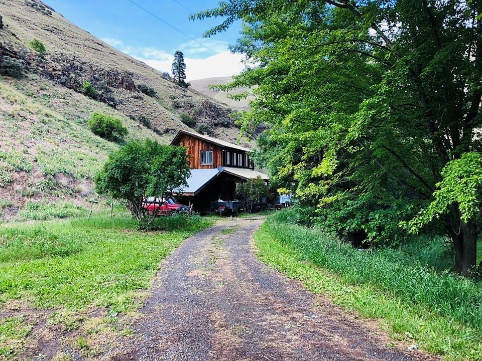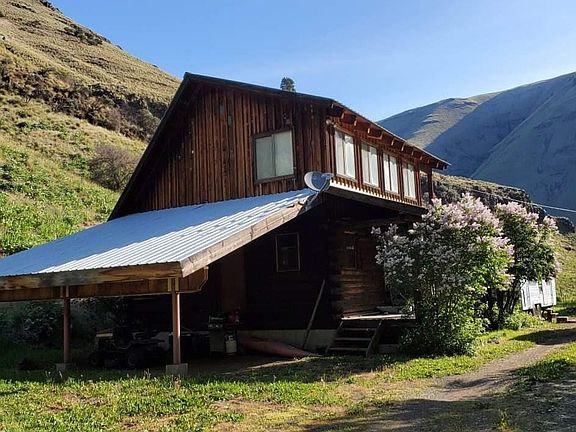 Charming log home in the mountains. Just 8 minutes from Riggins, Idaho's Whitewater Capital on the Salmon River! Go up the road to the Seven Devils Mtns for trails into high mountain lakes. Paved road to the driveway. A mature orchard, small pasture, creek with irrigation rights, privacy, canyon views, covered decks, small shop. Plenty of flat usable space. D-log construction with exposed beams. Perfect artist's cabin! Upstairs bedroom / walk in closet could be converted to 2 bedrooms.