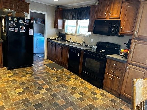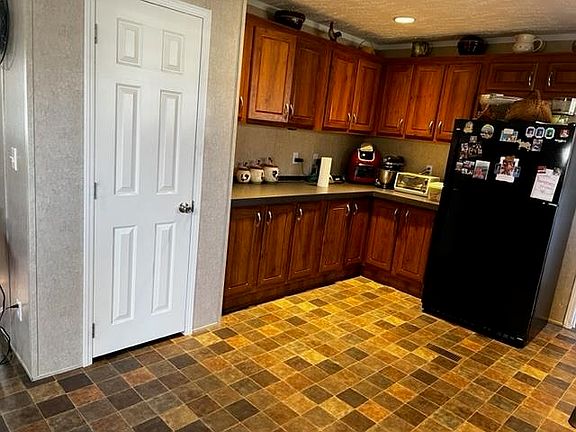 This is a beauty. Privacy with a beautiful view. 6.7 acres beautiful. Nice Covered porch on front with a deck on back. The is a Very well kept home featuring 3 bedrooms and 2 baths. (Primary bedroom with primary bath). Nice size kitchen with Black Appliance that stay with home. Dining room located beside kitchen. Walk out is large yard area and find an area for kids to play in playhouse and swing set. Large 2 car detached metal garage. Must see this one and don't wait long. Property also has a nice flat area extra on right side of house. Fruit trees garden spots and more.