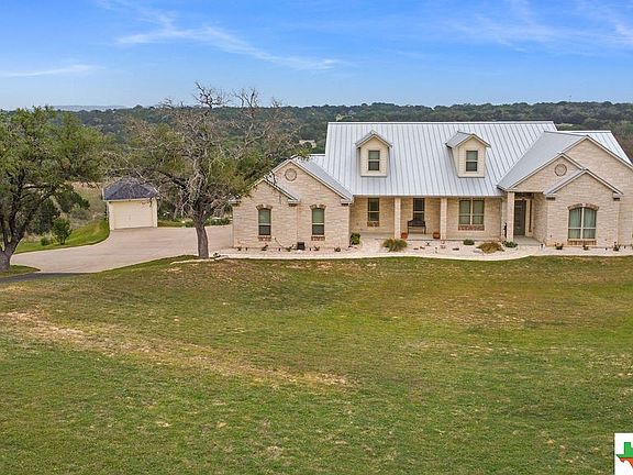 Hill Country paradise with breathtaking, panoramic views, plentiful wildlife acreage! Located atop 10.6 sprawling hill country acres is this stunning estate just 30 miles north of Georgetown, in the private, gated community of River Ridge Ranch. Enjoy this exclusive community’s 4 parks, hiking, horse trails, as well as access to the Lampasas River. Here, you’ll surely be awestruck by the view, a spectacular backdrop for the beautiful backyard retreat with in-ground pool and waterfall. Formal and breakfast dining spaces and a master suite highlighted by bay windows with private patio access. Master an enormous walk-in, spa-like shower. Features include stained/scored concrete floors, game room, screened-in porch (rescreened 2023); foam insulated large attic floored and ready for finish-out, 2 tankless water heaters, newly, upgraded (2022) metal roof, RV pad and cover (2022), private, electronic gate, air handler and AC units replaced 2020, and so much more!