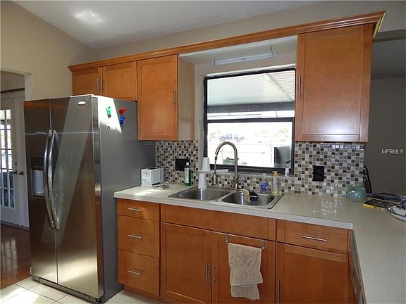Charming and affordable pool home in Burnt Store Meadows. This home sits at the end of a cul-du-sac with a green belt to the rear of the home. Large fenced backyard! Features include updated kitchen with gorgeous maple cabinets, tile back splash and stainless steel appliances. French doors lead from the family room and the master bedroom to the pool and covered lanai finished with brick pavers. Inside laundry. Family room off the kitchen is currently being used as dining room. Burnt Store Meadows is a growing community with many beautiful new homes being built, city water & sewer, shopping nearby. Tenant is now OUT. Ok to show. All measurements are approximate.