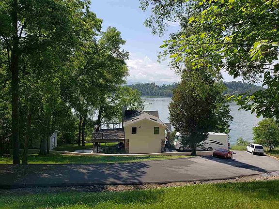 Million dollar view with beautiful mountains cape behind gorgeous lake. Unobstructed exceptional water views...cleared and graded usable land providing water views from almost every room in the home. 20' high ceiling in main living area with open floor plan. Almost all windows and doors are Andersen; includes two 16 foot Andersen sliders, Huge updated kitchen ( cherry wood cabinets, 5 burner chef stove, newer stainless appliances, large sink, self closing drawers, pull out spice rack, solid cherry moldings above and below cabinets, granite countertops), two huge full bathrooms completely updated, Huge shed with high ceilings to store small boats and large kayaks and even lawn equipment, Split bedrooms and split air conditioning/heat, Rod iron fencing, including rod iron driveway gate, gas fireplace, outdoor kitchen. Nice dock already in place with a nearly level yard to it form the lower level deck which has a hot tub from which you can enjoy this splendorous view. THIS HOUSE IS MOVE-IN READY!!! IT IS SUPER CLEAN INSIDE AND OUT!!! This house is private. Lot in between neighbors is wooded and owned by other neighbor for a very long time with no intentions to develop it according to the neighbor.