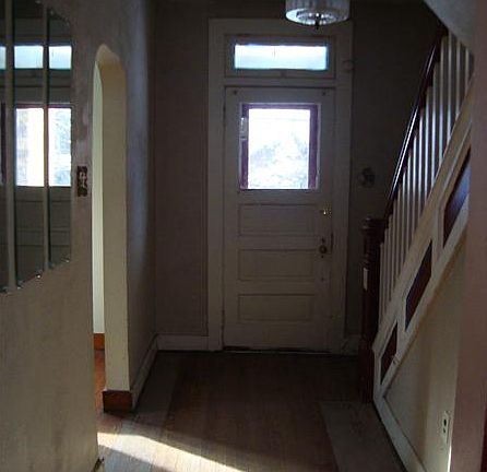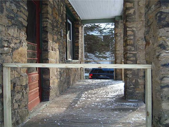 2 story stone and vinyl with covered front porch, off street parking, full basement.