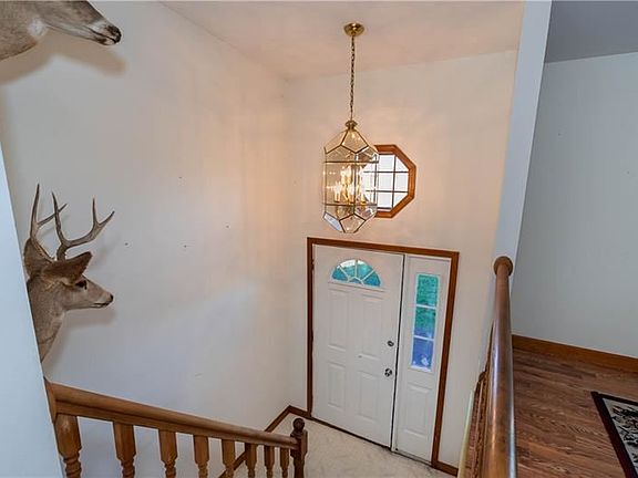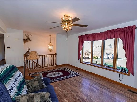 Charming, comfy and cozy split foyer tucked back and away on a beautiful acre! This 3 bedroom, 2 and 1/2 bath home has so many nice features. On the main level there is a nice sized living room/dining room combo, eat-in kitchen with appliances, hardwood floors in the main living areas and new carpeting in the bedrooms, master en-suite has a full bath with Jacuzzi tub! Partially finished lower level would be great for a family/game room with a half bath and laundry area. Lovely patio area overlooks the country field views and you'll love that this home has such a nice warm, homey feeling! Shed with electric as well as a private access driveway and no traffic!!
