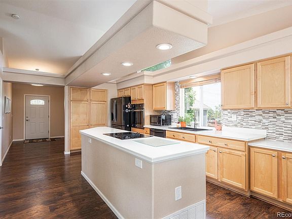 Exceptional Highlands Ranch home located in a secluded cul-de-sac. The entry leads guests to the light-filled, main level open floor plan with engineered wood floors throughout. The main level also features a large kitchen with an island, expansive white Corian counters, loads of storage, and eating space. A "cool" custom, slab wood & metal bar overlooks the great room for easy entertaining. The great room has space for formal dining, media and opens to the backyard, and deck with hillside views. Upstairs is the master bedroom with a double door entrance, walk-in closet, and a 5-piece ensuite bath. 3 additional bedrooms (a rare find) and full bath complete the upper level. The finished basement offers great flex space for game tables, media room, or playroom. NEW HVAC system, new front door, plantation shutters, and all interior door hardware/handles/hinges replaced, new kitchen sink, faucet & lighting, landscape improvements: concrete borders, re-vamp of the sprinkler system, and a tidy pathway for easy access to the backyard. 3-Car Garage. Perfectly located near shops, restaurants, schools, parks & trails!